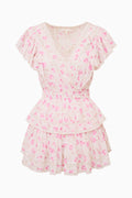 Our best-selling Gwen Dress returns as part of our Fragrance Capsule Collection, this time arriving in our best-selling perfume prints on an airy cotton with lace embroidery details. This short frock has a faux wrap top, which forms a deep v-neckline, shirred ruffles line the outer edges of the shoulder and bodice forming flutter sleeves. The skirt is constructed just like our signature Ruffle Mini – with an elastic waist and two shirred flounce tiers.