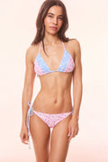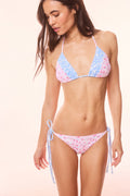 This season, our classic Harbor Bikini Set returns as part of our Re-Edition collection reimagined with a new, color blocking detail and our original Windsor Rose print, inspired by vintage textiles. The sweet and sexy triangle top features a playful ruffle lining with interior bust seams. The print continues on the thin strings that tie comfortably around the neck and back. The bottom has a classic, revealing cut with string ties at each hip that make it adjustable.