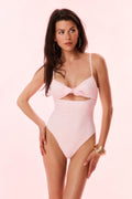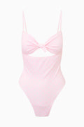 Feminine and sophisticated in the Harley One Piece. This chic swimsuit features a pretty pink polka dot print, thin adjustable straps, and a flirty tie detail at center front.