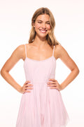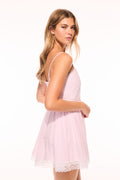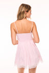 Seaside chic in the Harrisine Dress. The pretty mini debuts with a crisp poplin fabric with strips of vintage-inspired laces. This flirty piece features spaghetti straps, smocking at the back of the bodice that falls to a full, pleated skirt.