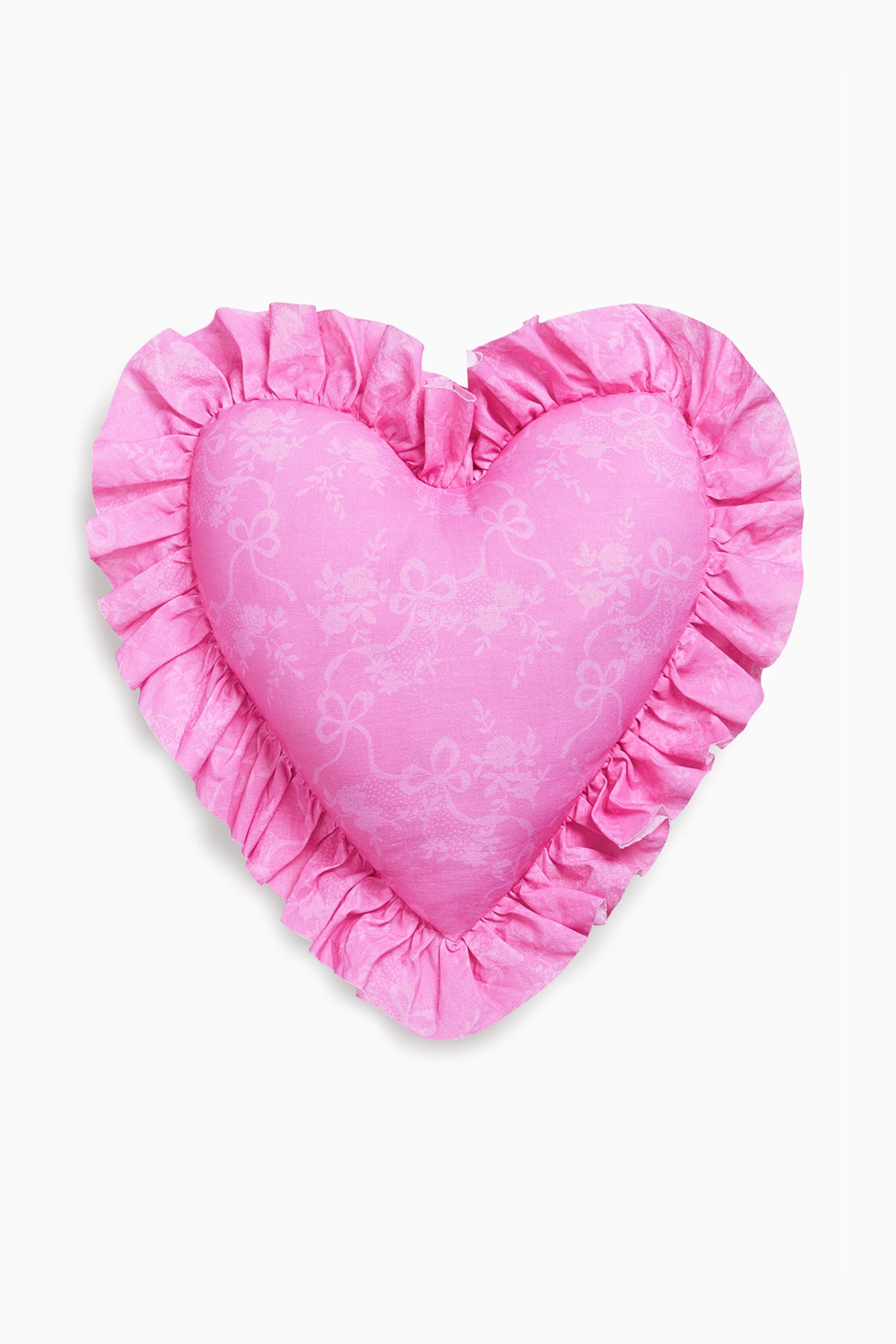 Home is where the heart-shaped pillow is. Our best-selling throw has returned for the season, this time in new festive prints featuring our signature heirloom florals and winding bow. The pillow is adorned with ruffles along the outside for a playful finish.