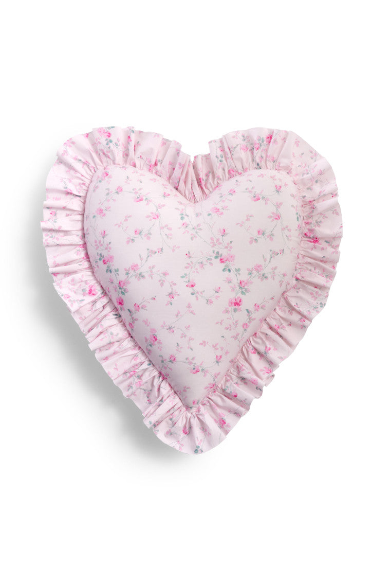 Home is where the heart-shaped pillow is. Our best-selling pillow is back and prettier than ever with our new favorite signature floral prints. Featuring ruffles on each end, the pillow includes a removable insert and zipper closure for added convenience.