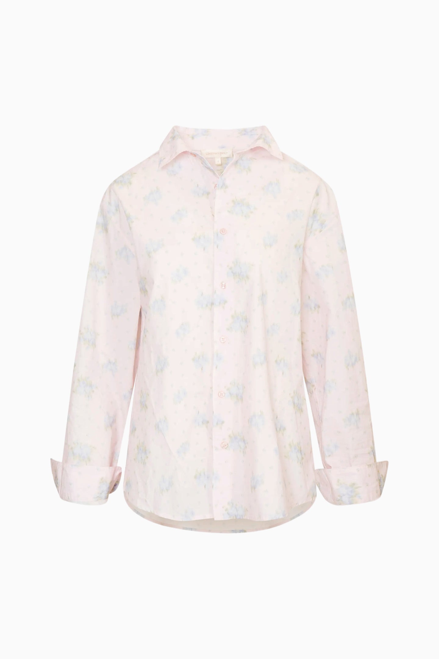 Because the guys like to dress up too. Our first-ever men’s Hudley Shirt is back. Match your beau with this crisp, cotton poplin button down featuring our signature fragrance floral prints. With a relaxed fit, the piece arrives with a center-back box pleat for ease, a collared neckline, long cuffed sleeves, and is finished with a shirttail hem.