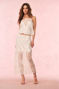 Put on the pretty with our Ilene Skirt. This sexy midi skirt arrives in a drapey, charmeuse fabric featuring gorgeous chantilly lace detailing at the bottom half. The pencil skirt has a bias cut and elastication at the waist making it easy to pull on and gives it a comfortable wear. The skirt is finished with a center back slit. Pair with the Constantina Top for a full set.