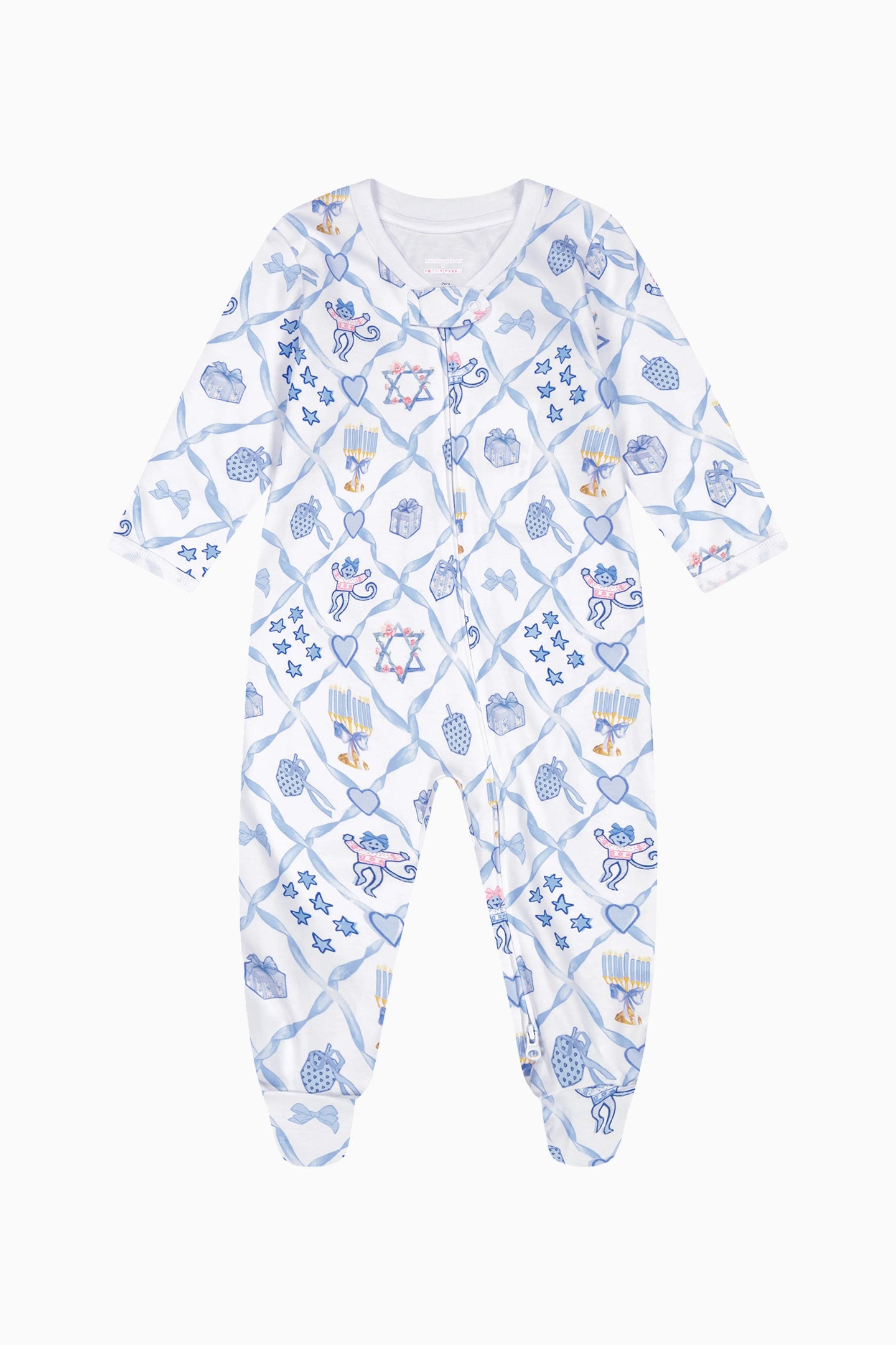 Our babies are ready for Hanukkah in these festive pajamas from our LoveShackFancy x Roller Rabbit collab. The Infant Zipper footie keeps baby warm and comfortable all night, while the two-way zipper makes 2AM diaper change quick & easy.