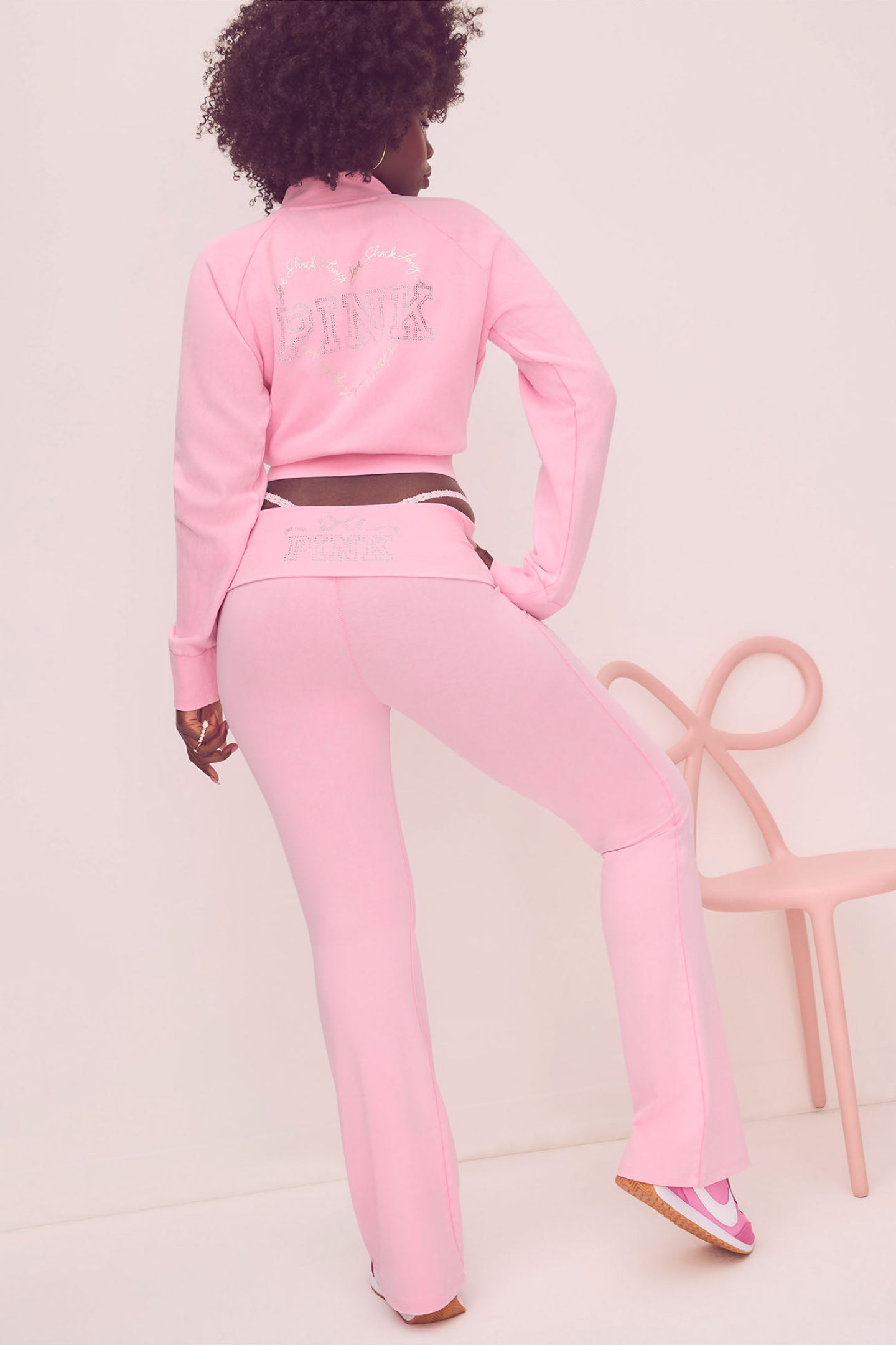 Introducing the Reissued Full-Zip Sweatshirt from the exclusive, limited-edition PINK x LoveShackFancy collaboration. This curve-hugging style, dressed-up with ultra-sweet deets, is proof that you can be glam while also staying cozy. Wear with the PINK x LoveShackFancy Cotton Foldover Mini Skirt.