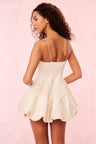 On our way in the Jake Dress. This stunning party mini debuts with a luxe, satin fabric. The dress features a flirty bubble mini skirt which sits beneath a corset-like, fitted bodice with a dropped waist. Thin spaghetti straps and a high neckline give this piece an elevated and chic silhouette. Wear on your next date night, party and girl’s night out.