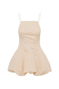 On our way in the Jake Dress. This stunning party mini debuts with a luxe, satin fabric. The dress features a flirty bubble mini skirt which sits beneath a corset-like, fitted bodice with a dropped waist. Thin spaghetti straps and a high neckline give this piece an elevated and chic silhouette. Wear on your next date night, party and girl’s night out.