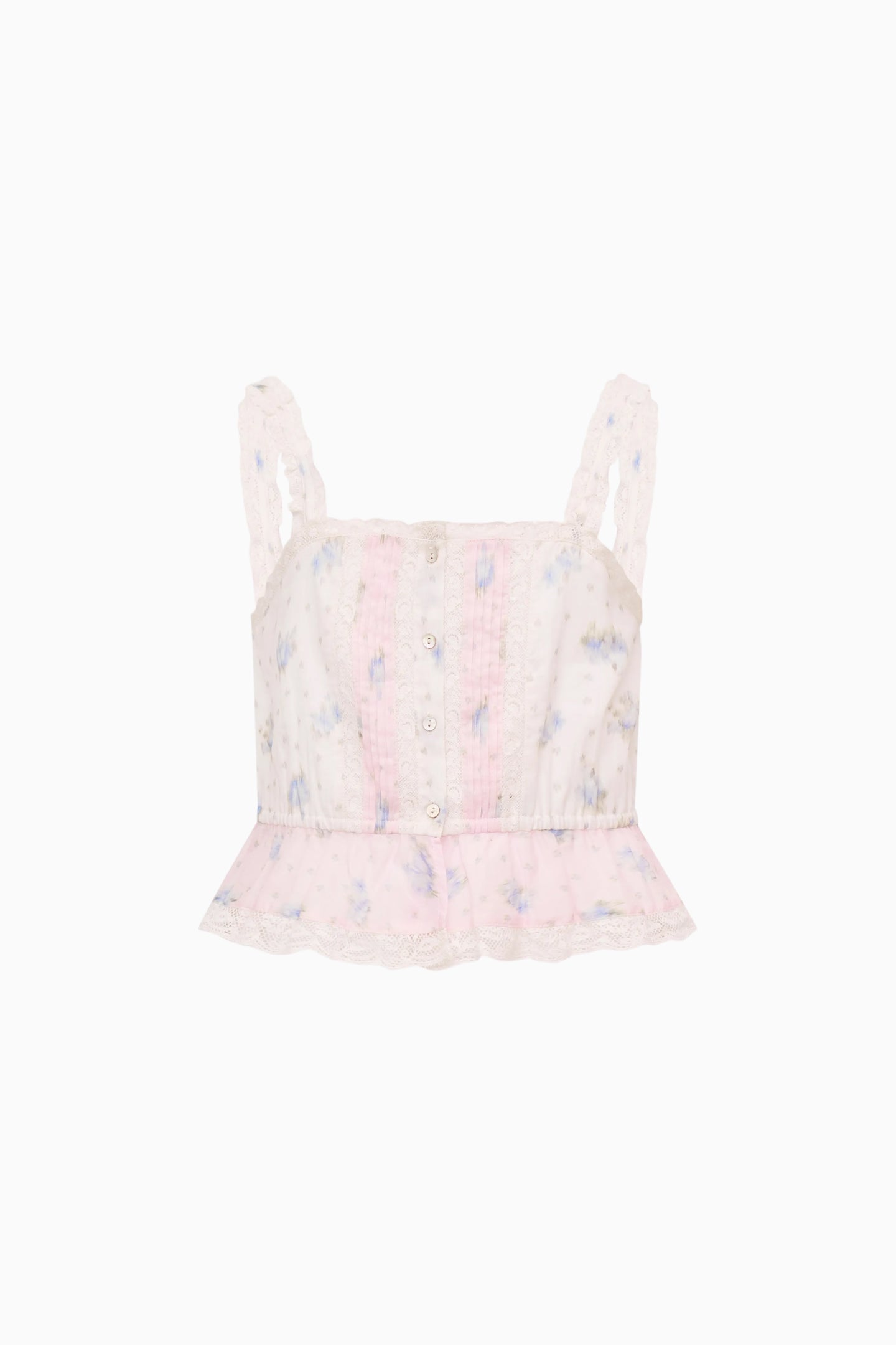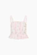 Our minis are ready for sunshine in the Jessamine Top. This piece features an heirloom floral print on an airy, cotton fabric. The piece features tank straps that fall to a bodice with vintage-inspired lace insets, buttons at center front, and a playful ruffle hem.