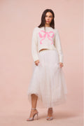 Cozy and chic in the Jorah Pullover. Because everything’s better with a bow, this charming off-gauge knit is designed from a warm, alpaca blend featuring a large bow on the front. Pair with a Ruffle Mini Skirt or your favorite vintage denim.