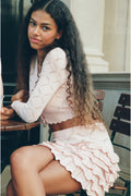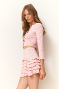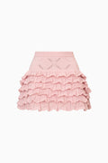 Feminine and flirty in the Kalliope Skirt. This pretty mini debuts with a dry-handed cotton yarn featuring our sweetheart argyle. The unlined skirt is slightly sheer at the top through pointelle detailing. Ruffle tiers adorn the skirt with rib scallop trims and the waistband is elasticated and encased in a rib stitch for ease and comfort.