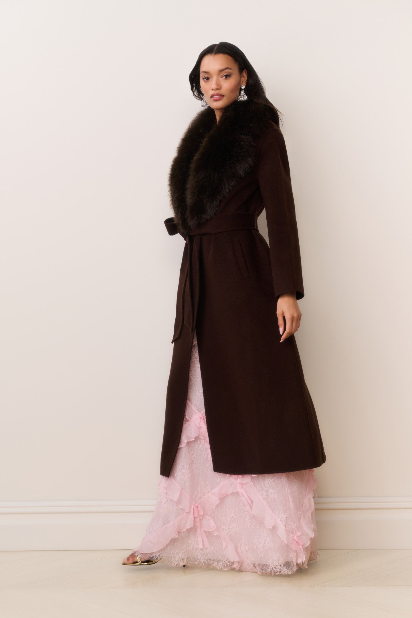 The Kenzia Coat is the longer, duster-length cousin of our Rosen Coat—designed from a soft brushed double-face wool for a cozy yet refined feel. This wrap-style silhouette ties at the waist with a sash, and side pockets add practicality while maintaining its elegance. A detachable collar lets you switch up the look, while the long line of the coat drapes beautifully with movement. A dreamy, versatile layer that wraps you in warmth and effortless sophistication.