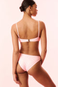 Introducing the Klaudyna Bikini. This sweet swimwear has a tied front for a feminine and flirty look, adjustable spaghetti straps on the top, and low rise bottoms with a little bit of coverage in the back.