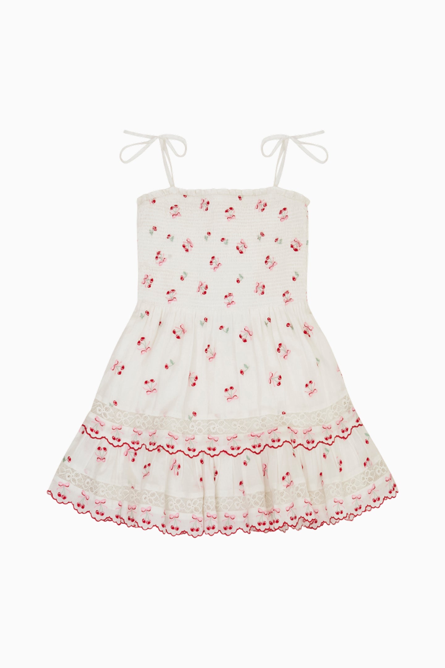 Introducing the Knightly Dress as part of our America’s Sweetheart Cotton Collection. This charming summertime frock is super sweet with printed cherries all over, scallop details, a multi-tiered skirt and thin self-tie straps.
