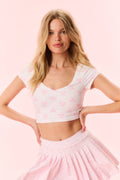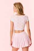 Feeling fit & flirty in the Kudura Top. This short sleeve active top is designed for low impact movement using our ultra-soft, breathable fabric. The piece features removable cups, a fitted silhouette, and shirring at the center front bust for a flattering and feminine look. Pair with the Dancia Skirt for a full set.