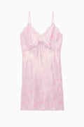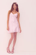 Introducing the Lace Trim Satin Mini Dress from the PINK x LoveShackFancy exclusive, limited-edition collaboration. The flirty piece is designed from a soft satin fabric, cut on the bias, and features a feminine bow print all over.