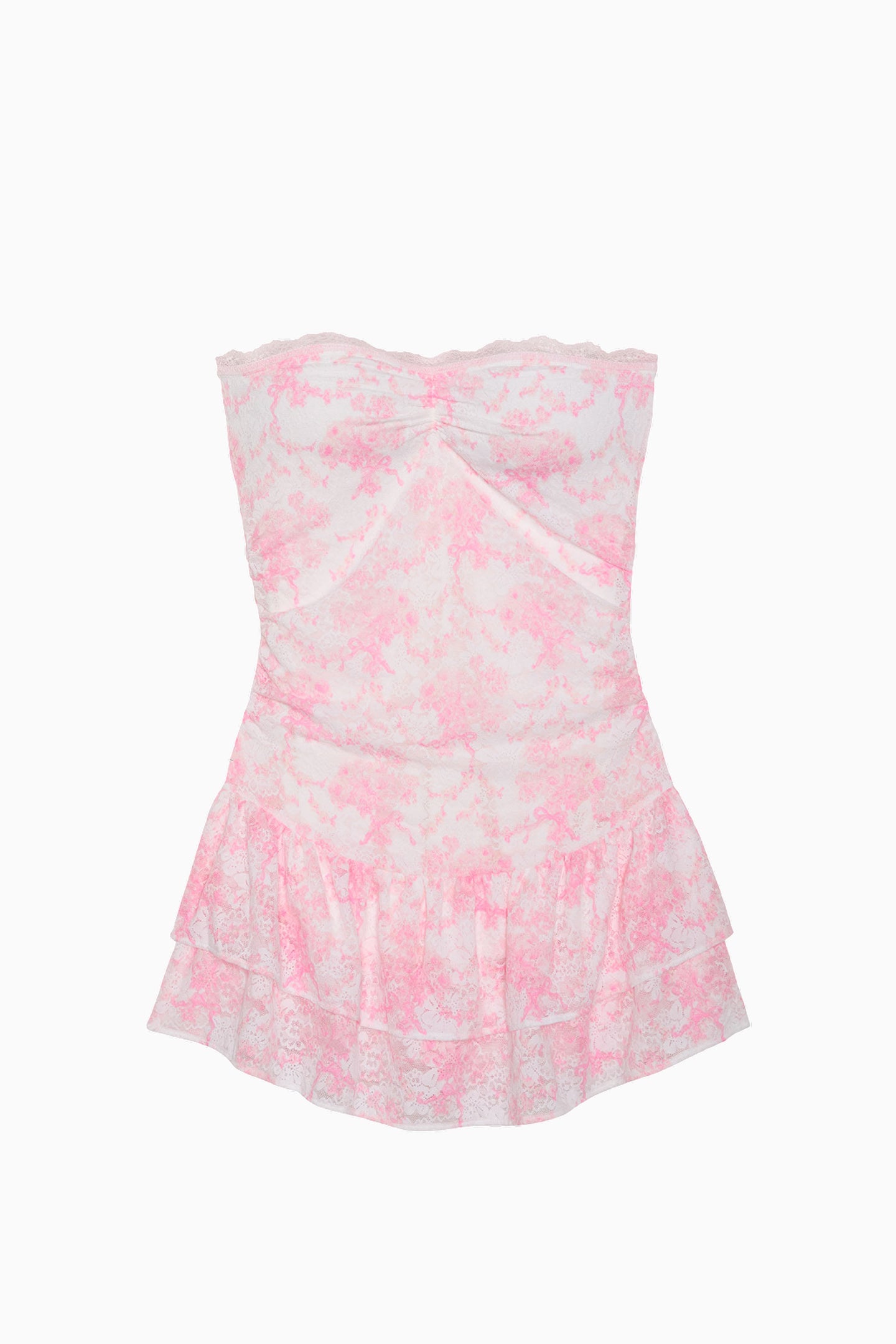 Introducing the Strapless Lace Mini Dress from the exclusive, limited-edition PINK x LoveShackFancy collaboration. It’s ok if you’re crushing on this super sweet mini dress that's crafted from soft and stretchy printed lace and finished with a flirty, tiered skirt. 'Coz we are too.
