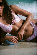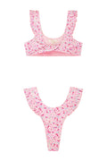 Extra cute in the Lanarey Bikini. Part of our Re-Edition Collection, this flirty swimsuit stuns with our original Windsor Rose print all over. The straps on the top and the top of the bottoms are adorned with flirty ruffles for a feminine touch. A twist detail at center front gives this piece a playful finish.