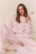 Keep things cozy (and chic) in the Leila Pullover. Crafted from soft cotton-polyester fleece with our new Mon Cheri allover heart-and-lace print, this easy-fit style blends comfort with a playful twist. Finished with ribbed trims at the neckline, cuffs, and hem. Perfect for Love Day lounging. Pair with the Momo Sweatpants for the full, cozy set.