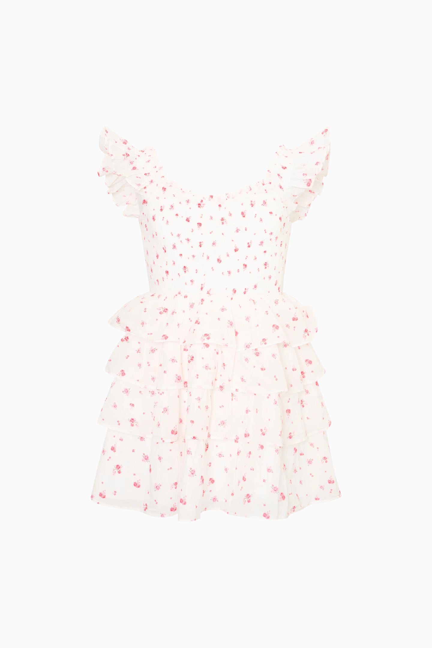The Linoette Dress is back as part of our Re-Edition collection with an original, ditsy print. This pretty frock has tiny flutter sleeves and a multi-tiered skirt giving this piece and airy look and feel.