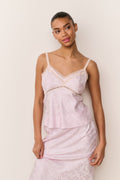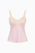The Lirena Top is a bias-cut cami designed from our custom satin jacquard. Featuring an empire seam and delicate lace straps, it’s easy to pull on and showcases lace detailing throughout. Pairs beautifully with the Kalo Skirt for a full set.