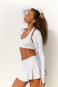 Say hello to our newest sporty chic staple. The Livetta Skirt sits effortlessly at a lower waistline with a comfortable inside elastic waistband for a just-right fit. Crafted with cover stitch detailing along her seamlines, she’s finished with a playful flounce at the hem for that signature LoveShackFancy movement. Perfect for court time, coffee runs, or casual days in the city — pair it with our Dierdra Bra for an elevated set moment.