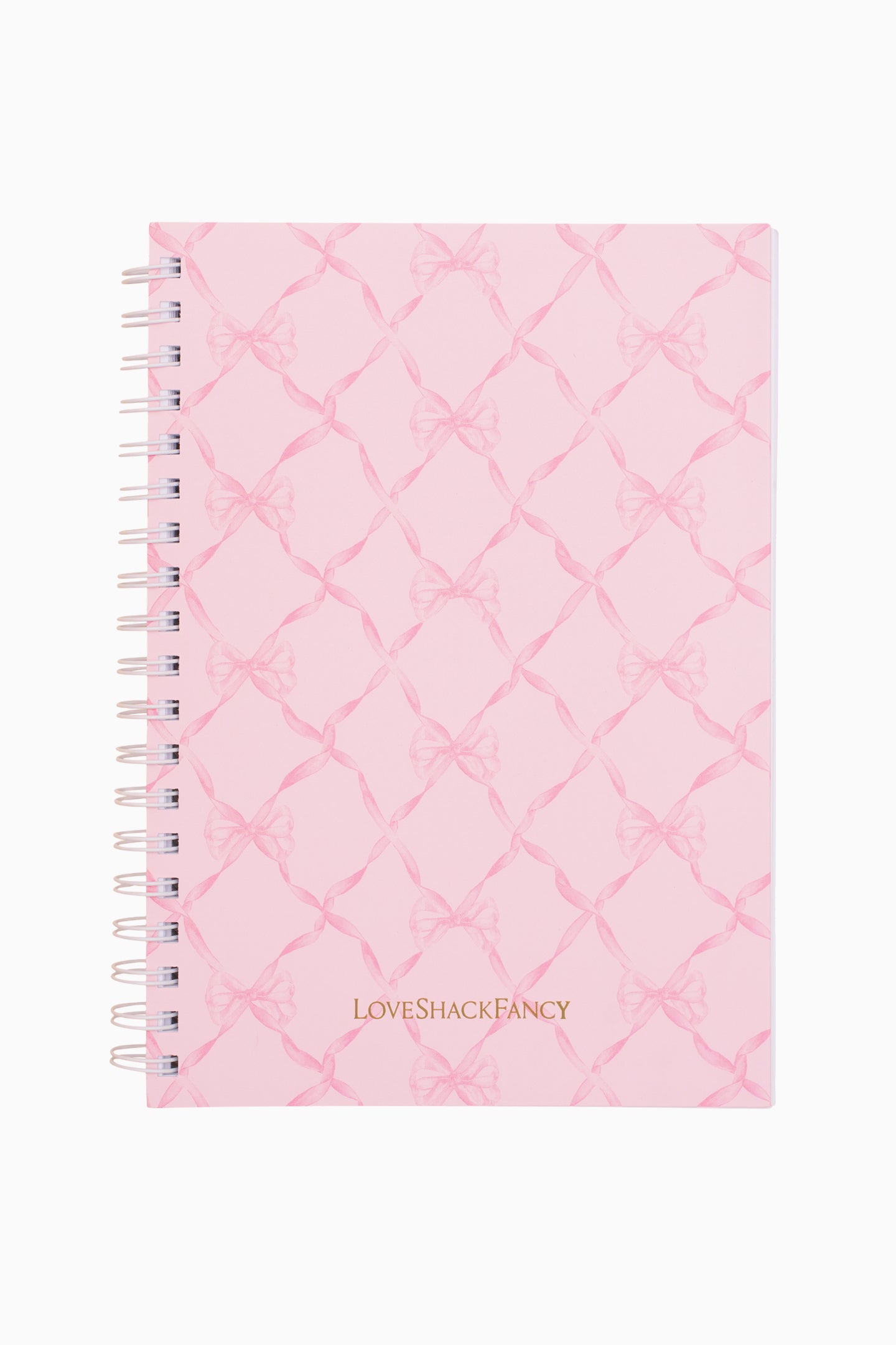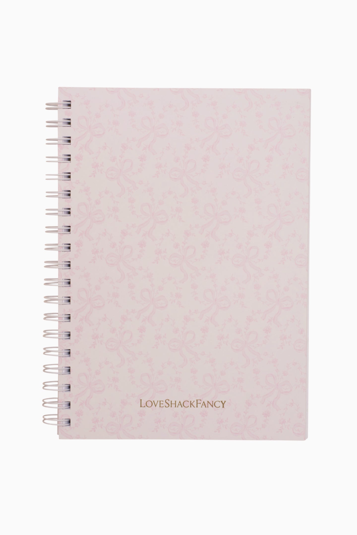Introducing the LoveShackFancy Spiral Notebook. This back-to-school essential features our signature prints on the front and back cover. The spiral white notebook has 100 common leaves lined text pages.