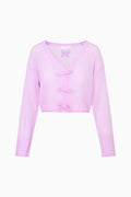 Cozy and cute in the Luisella Cardigan. This extra soft layer arrives in 100% off gauge cashmere that’s open and light. Self-knit bows adorn the center front with buttons hidden behind the plackett for functionality. Layer her over your favorite dress or vintage denim.