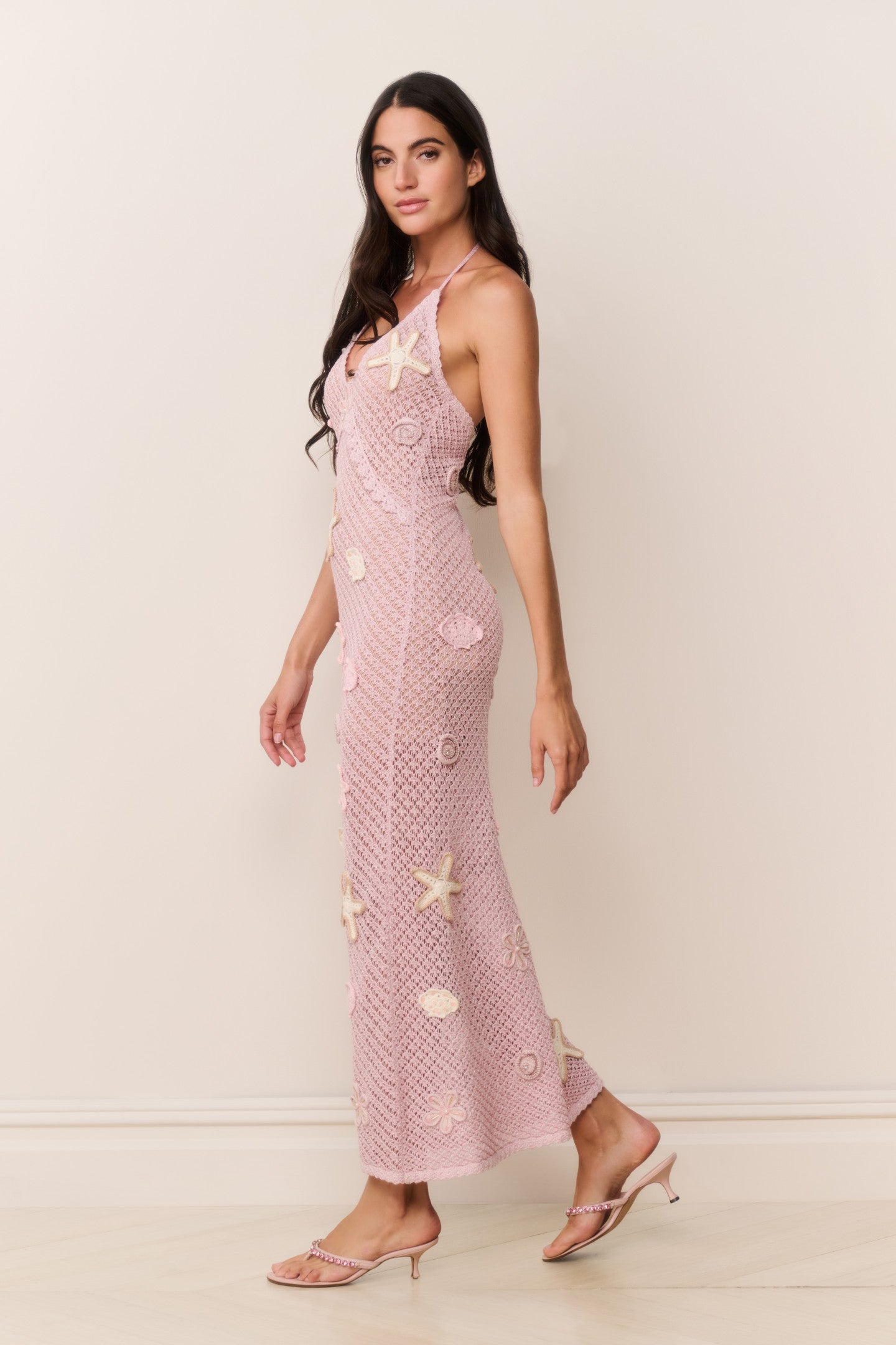 The Macie Dress is a shimmering, hand-beaded midi crafted from a cotton-lurex crochet for a lightweight, summery feel. Featuring seashell and starfish motifs adorned with sequins and beads, the dress glimmers with every movement. Designed with a nude stretch mesh lining for coverage and comfort, Macie offers a fitted, midi-length silhouette perfect for warm-weather occasions or seaside getaways.