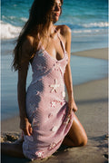 The Macie Dress is a shimmering, hand-beaded midi crafted from a cotton-lurex crochet for a lightweight, summery feel. Featuring seashell and starfish motifs adorned with sequins and beads, the dress glimmers with every movement. Designed with a nude stretch mesh lining for coverage and comfort, Macie offers a fitted, midi-length silhouette perfect for warm-weather occasions or seaside getaways.