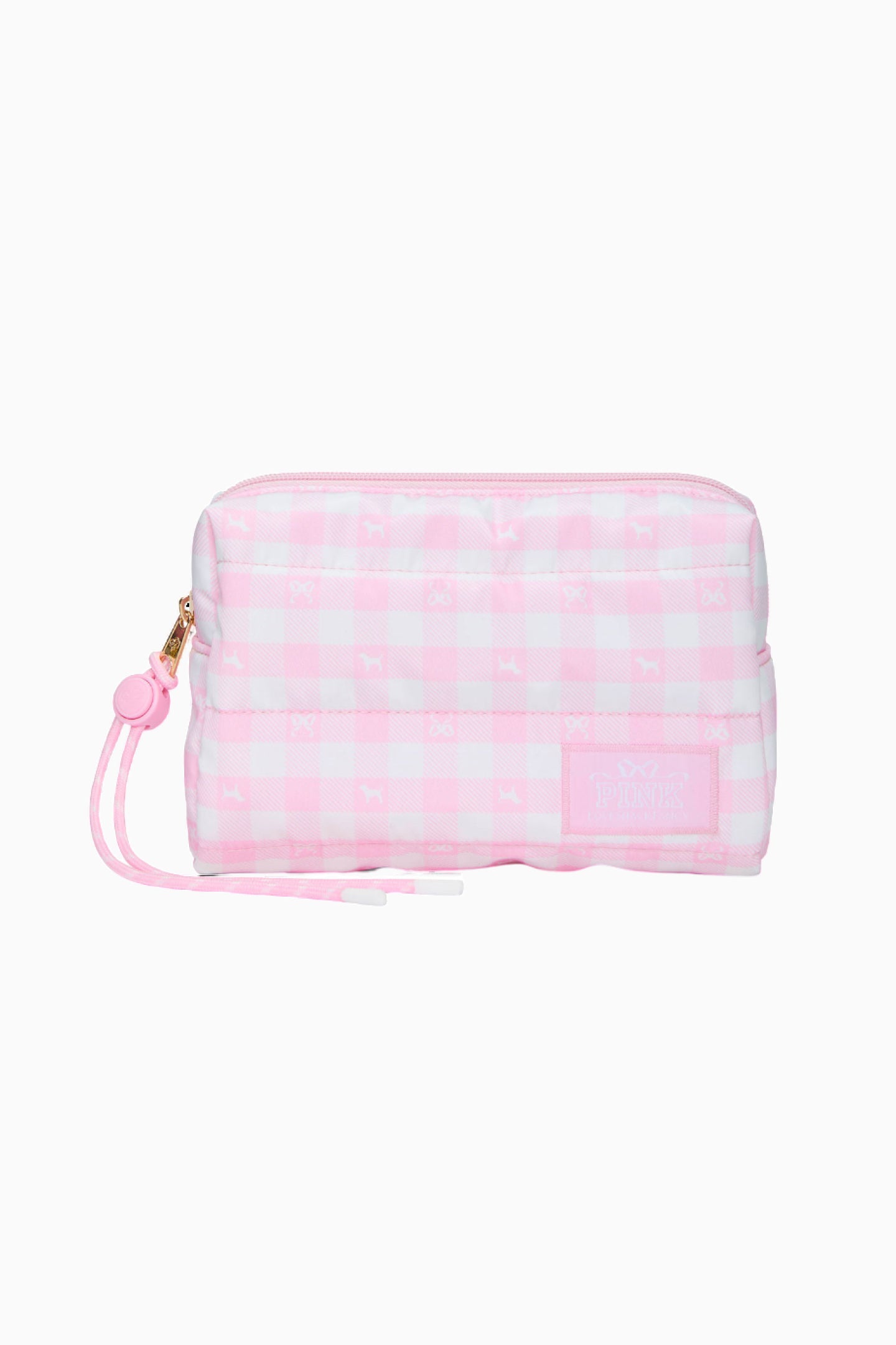 Introducing the Makeup Bag from the exclusive, limited-edition PINK x LoveShackFancy collaboration. Your GRWM just got fancier. This quilted cutie features a paracord detail, interior pockets, and a sweet, printed pattern that makes storing all your stuff a total dream.