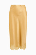Effortlessly chic in the Malina Skirt. This dreamy slip returns with a luxe silk charmeuse, drapey fabric. Easy to pull on, the midi skirt features elastication for comfort. This piece is finished with a scallop, delicate lace hem for a romantic look. Pair with the Brimsley Top for a full set.