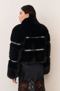 The Manby Jacket channels vintage glamour with a modern twist. Inspired by ’60s opera styles, this cropped statement piece is crafted from plush Novelty Fur with a soft, luxurious hand. Designed with a high collar stand and delicate strips of rhinestone crystal detailing, it creates the illusion of a quilted puffer while remaining entirely faux. A show-stopping layer that brings sparkle and sophistication to any holiday look.