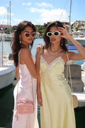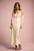 Feeling flirty in the Manuela Dress. This major maxi stuns with a soft, slinky fabric featuring a pretty polka dot print. A vintage-inspired slip dress, she’s easy to wear and effortlessly chic with a bias cut, scallop lace detail at the neck, and a subtly sexy cup detail.