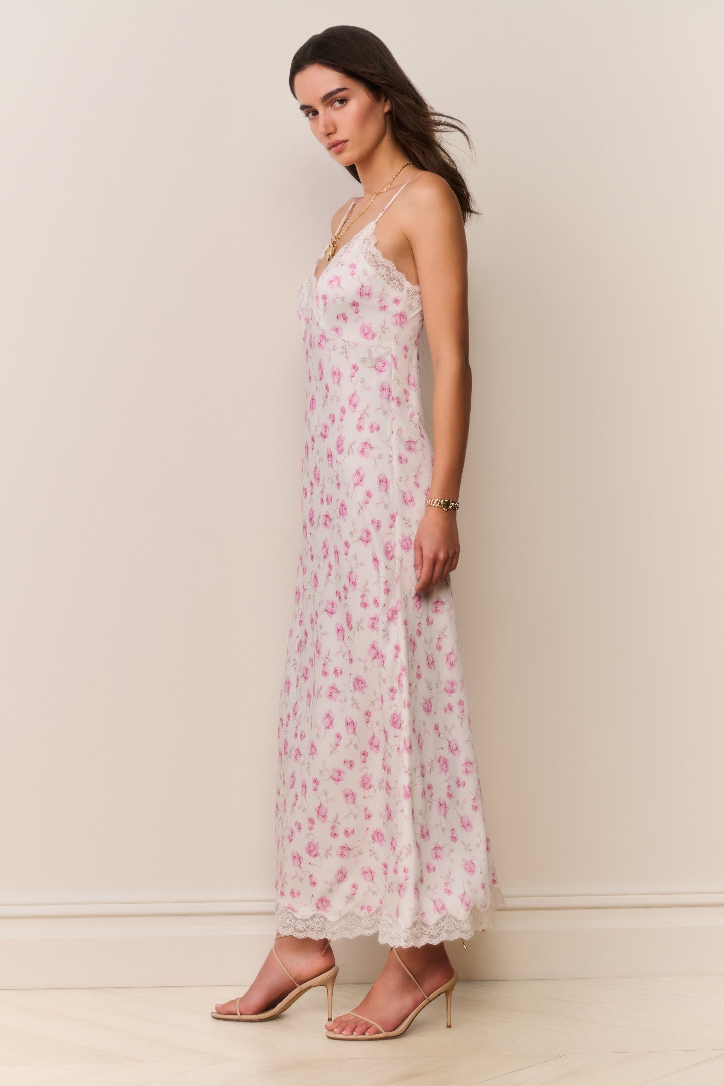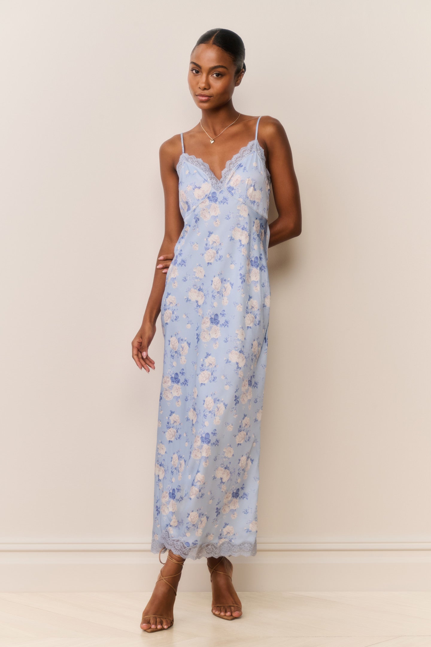 The Manuela Slip Dress is an easy, pretty maxi that softly skims the body with its lightweight, bias-cut silhouette. A lace-trimmed V-neckline, delicate spaghetti straps, and a darted bodice add shape, while our floral heirloom prints add a sweet, vintage touch.