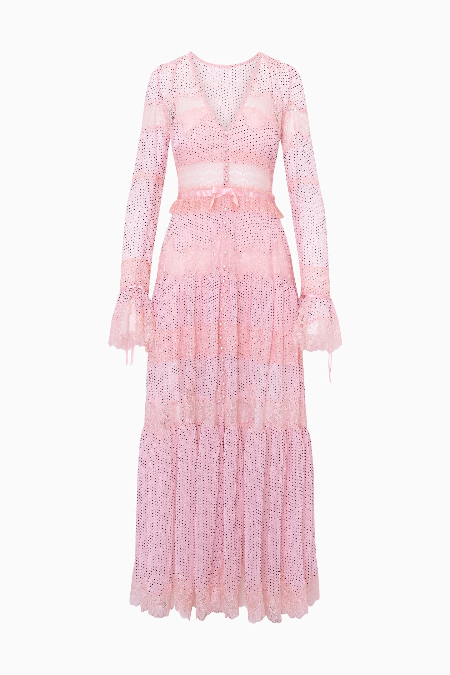 Marinetta Polka Dot Lace-Trim Maxi Dress