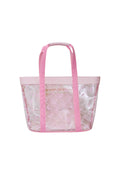 - Print mix opaque and transparent PVC with a hot pink canvas combo and adjustable drawstring pockets