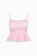 Introducing our latest capsule collection Made with Liberty Fabrics designed into our favorite elevated pieces. The Marzenia Top returns in Liberty's Tana Lawn™ cotton fabric with a floral print all over. This Victorian-inspired top features textured stripes, a smocked bodice to the empire waist and a charming flutter peplum adorned with lace trims and delicate tucking. Adjustable spaghetti straps ensure a perfect fit, making it ideal for pairing with skirts or denim for both casual and elegant occasions.