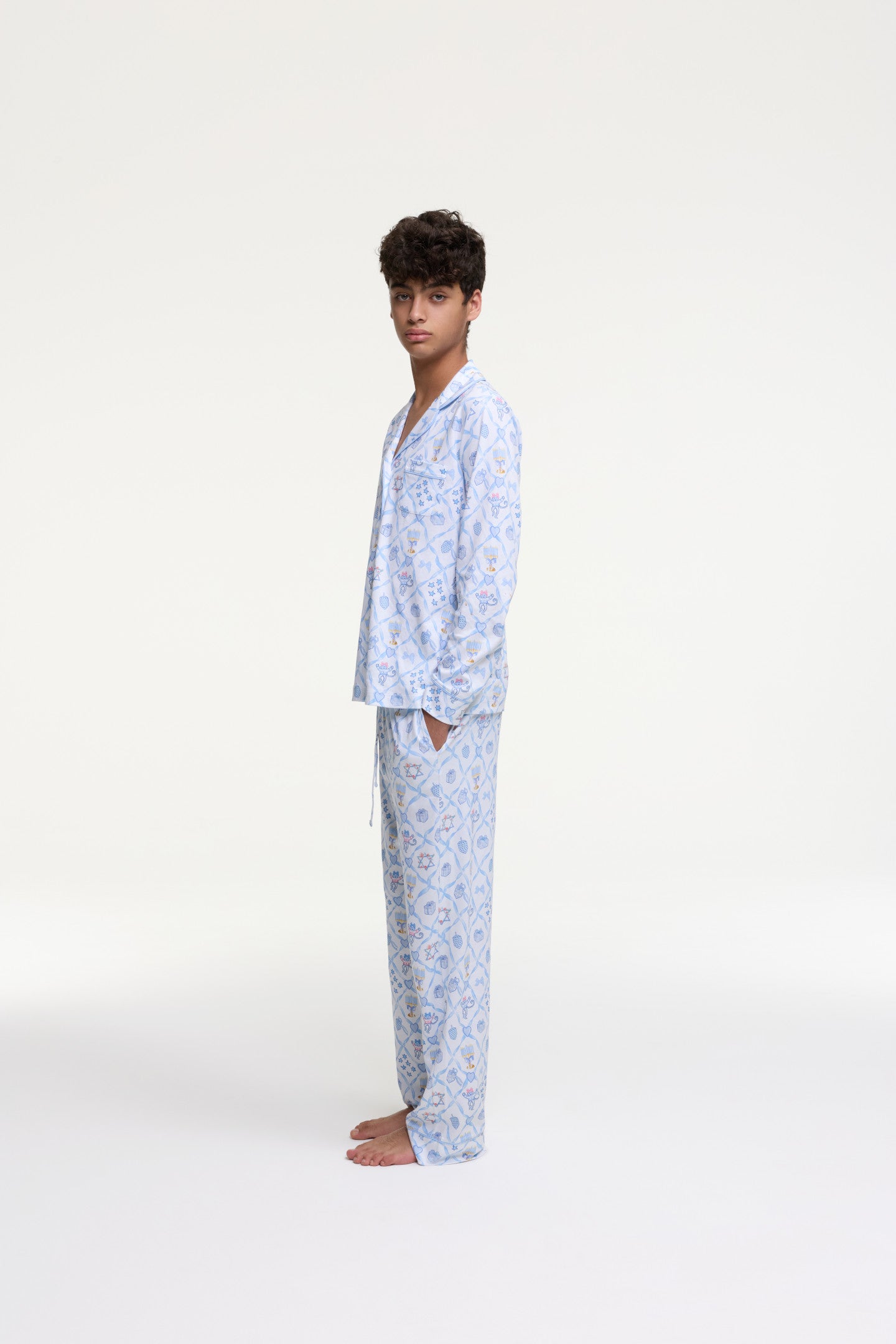 LoveShackFancy x Roller Rabbit Mens Starry Nights Lattice Long Sleeve Pajamas