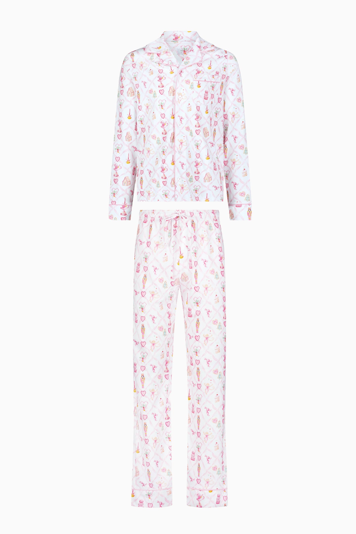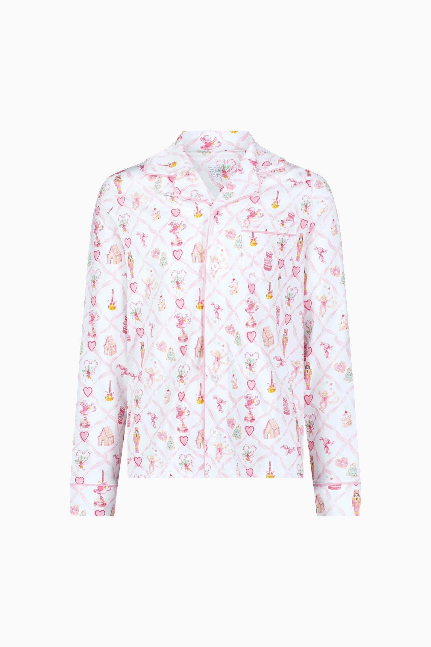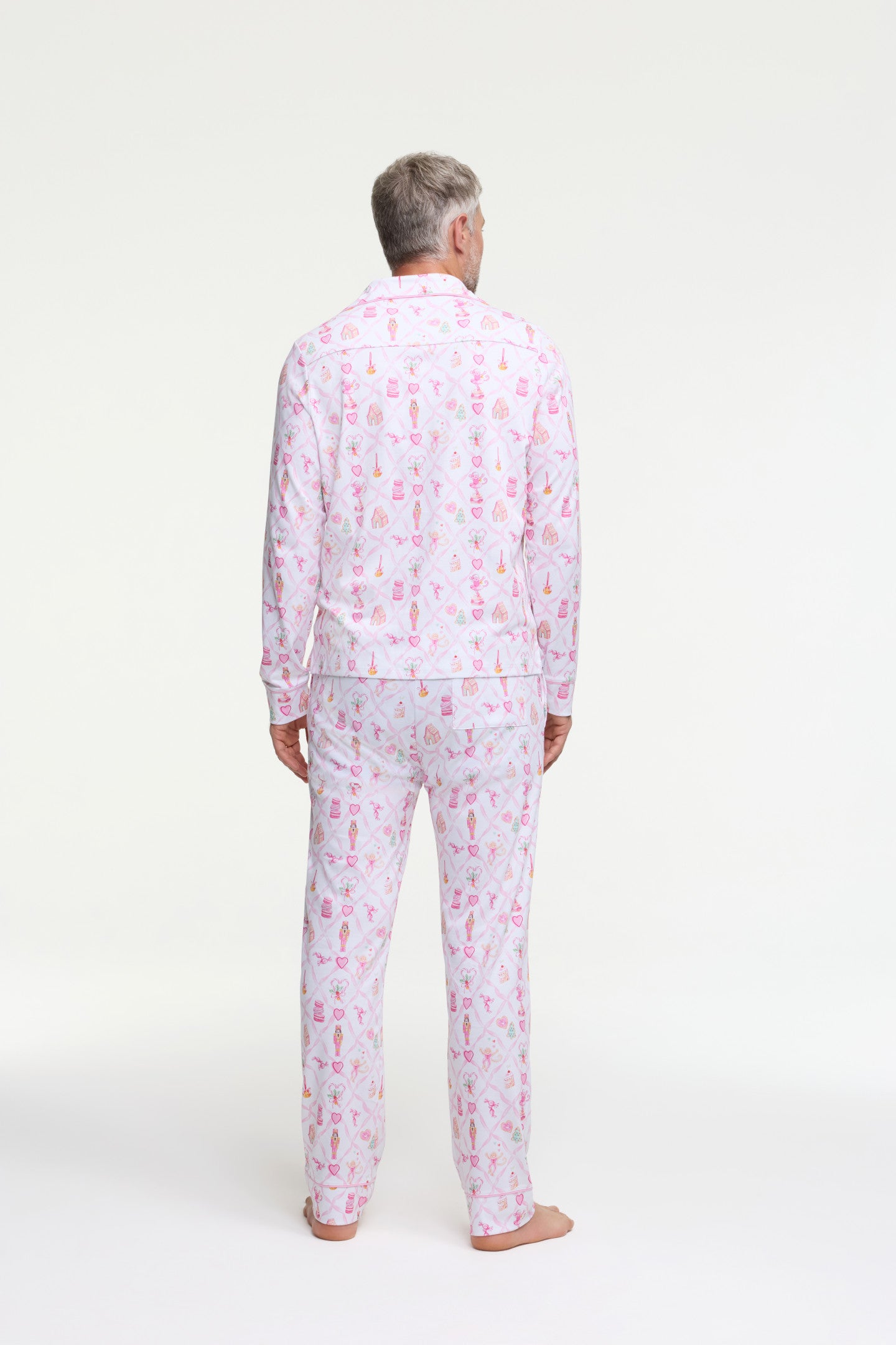 LoveShackFancy x Roller Rabbit Mens Sugarplum Lattice Long Sleeve Polo Pajamas