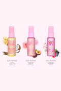 About the Fragrances: Sugar Blush: A fruity floral body mist that smells like dessert. Velvet Sun: A tropical body mist that smells like the beach. Berry Kiss: A fruity floral body mist that smells like a berry-filled garden. Created with love by perfumers Jerome Epinette and Alexandra Monet.