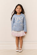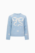 Cold weather cute in  the Mintley Pullover. This warm knit stuns with charming snowflakes and a large bow woven onto the sweater. She’s a must for the winter season.