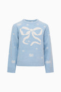 Cold weather cute in the Mintley Pullover. This warm knit stuns with charming snowflakes and a large bow woven onto the sweater. She’s a must for the winter season.