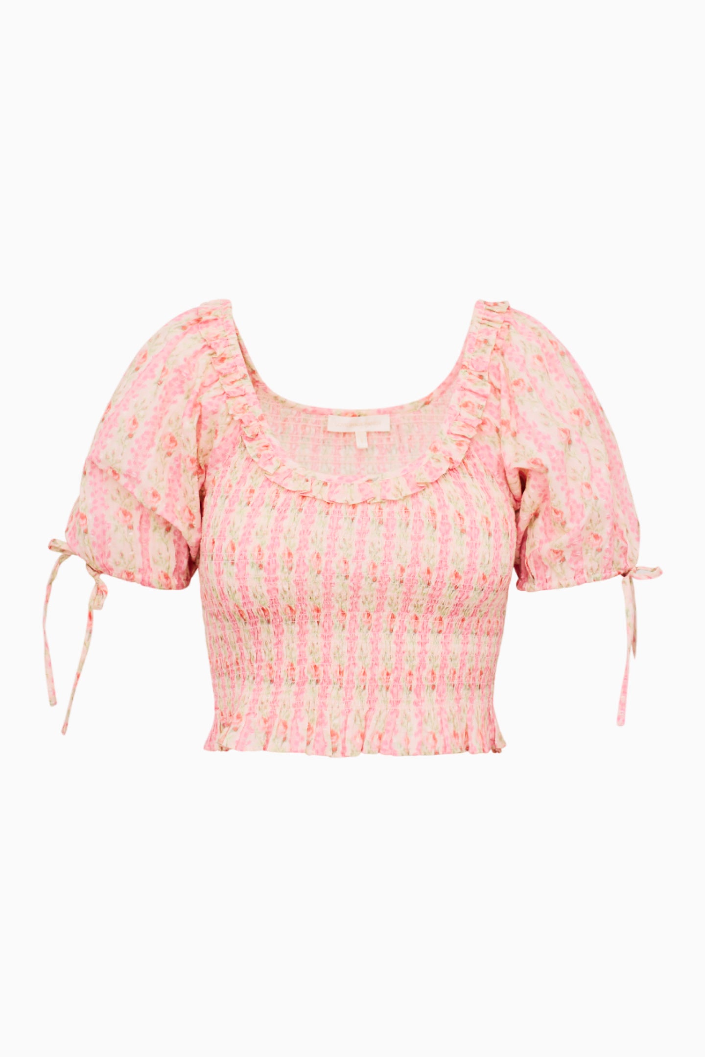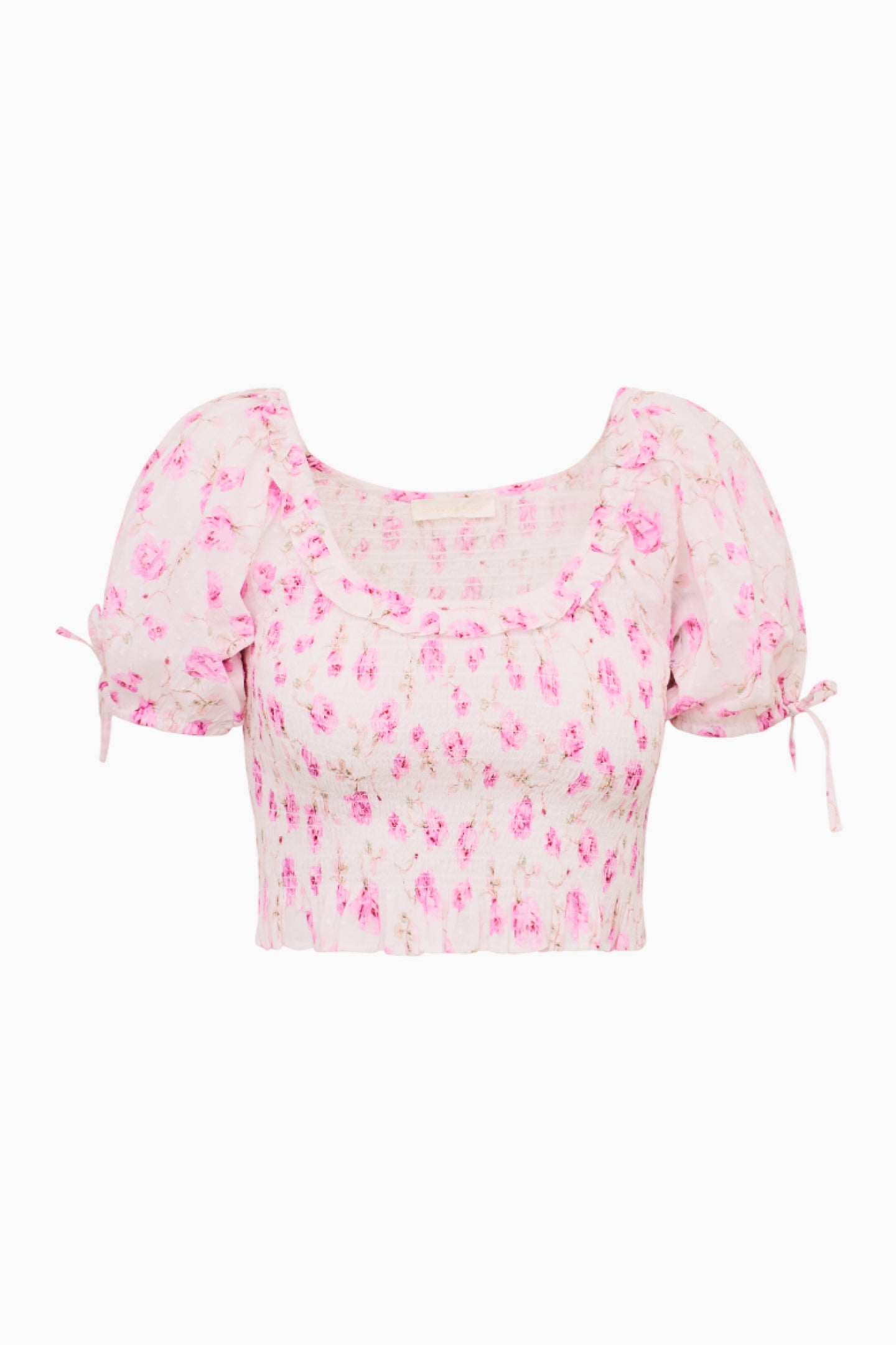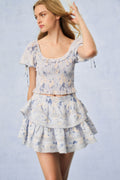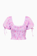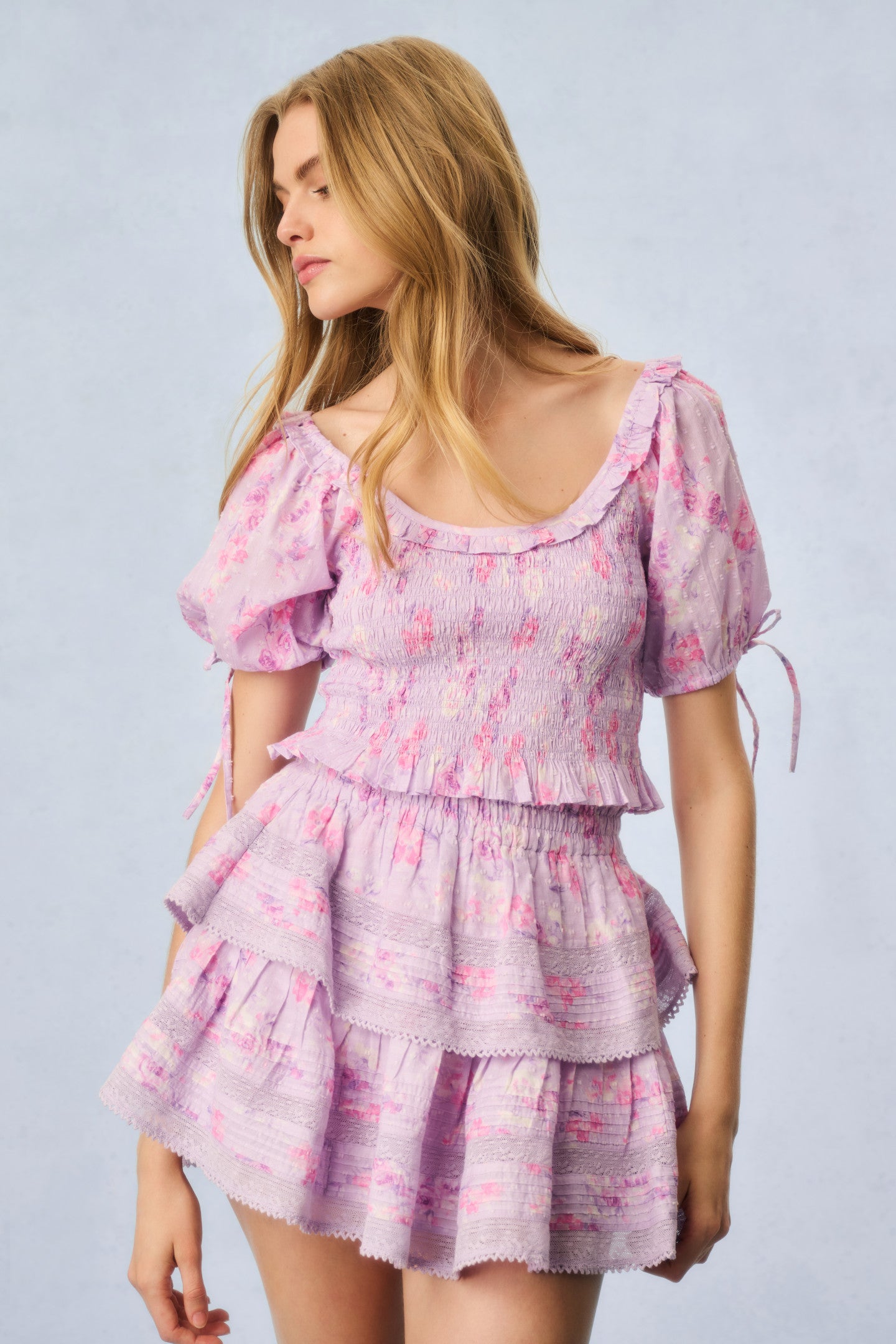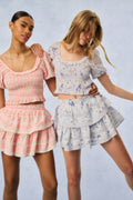 Everyone’s favorite Molly Top is back as part of our Fragrance Capsule Collection, this time arriving in our best-selling perfume prints. The top features a floral-printed cotton, short puff sleeves, and tiny ruffle details line the neckline for a playful finish. Pair with our Ruffle Mini Skirt for a full set.