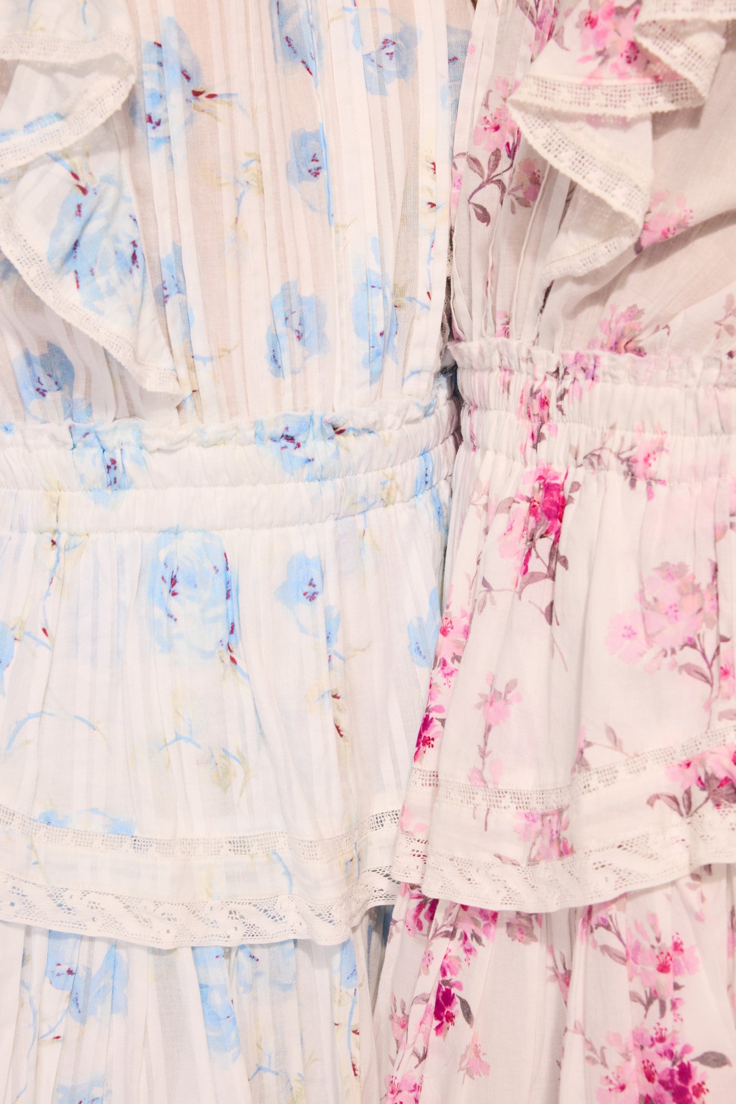 Our signature Natasha dress returns as part of our Upcycled Icons Collection, a limited-edition sustainable capsule featuring our best-selling silhouettes made from remnant LoveShackFancy fabrics. She features double ruffled flutter sleeves which cascade down the front and back of the body to highlight the elasticated waist. Intricate inset lace trims add an air of femininity and ease.