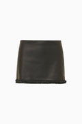 Cool and flirty with a hint of edge, our Noala Skirt is crafted from buttery-soft vegan leather for a modern take on femininity. Designed to sit low on the waist, this bell-shaped mini features a subtle ruffle at the hem and an easy, low-slung fit that feels effortlessly chic. Finished with a hidden zipper and built-in shorts for comfort and coverage, it’s the perfect piece to pair with everything from cozy knits to romantic blouses.
