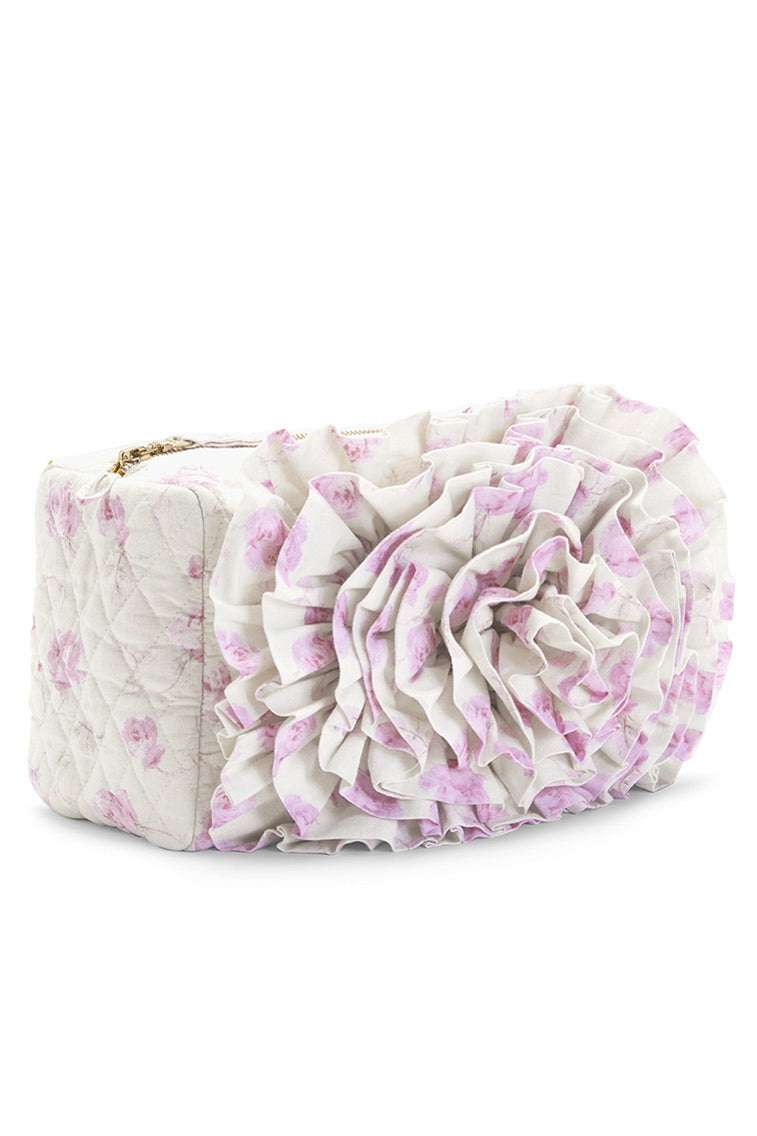 Our Octavia Bag returns in our signature fragrance prints. This piece is the perfect clutch or cosmetic purse. It's quilted, soft and compact. Zip closure at top.