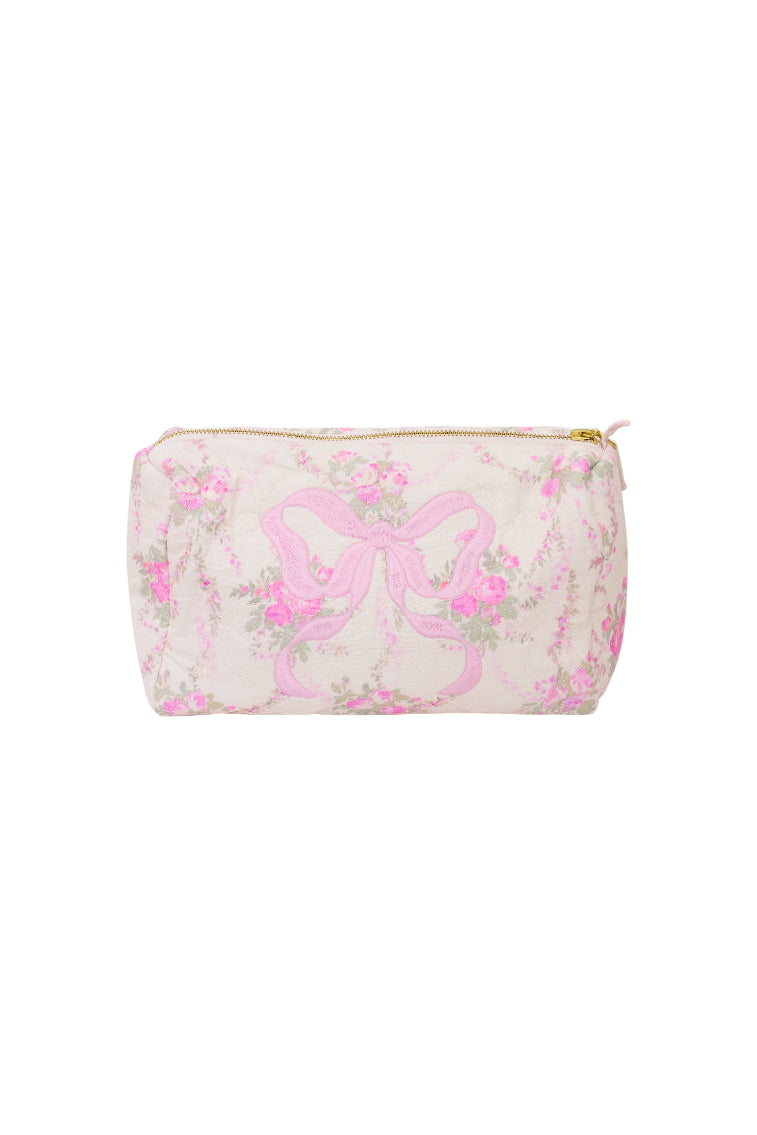 Our new Octavia Bag-in our whimsical, vintage-inspired floral print-is the perfect clutch or cosmetic purse. It's quilted, soft and compact with a 3D bow. Zip closure at top.