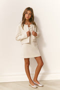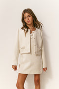 Our girls are preppy and polished for the school year ahead in the Palomina Jacket. With our luxe, elevated tweed fabric, this Upper East Side-inspired layer features tiny rhinestones lining the opening and a slightly fitted silhouette.