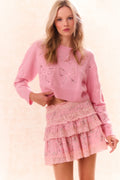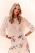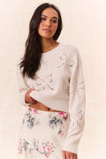 Cozy and cute in the Parson Pullover. Designed from an ultra-soft cashmere wool blend, this pretty knit features an easy crewneck body and sheer, lace bow insets thoughtfully placed all over the front, the back, and the sleeves.